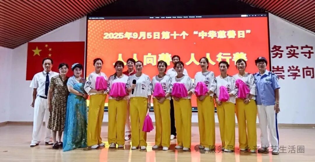 9月9日晚上7时,县慈善总会志愿服务队第四分队(乡音协会)到岱西镇前岸村文化礼堂,为村民们演出了一台以“人人向善,人人行善”为主题的文艺节目,志愿者们送上了精心排演的舞蹈、歌舞等节目,中间穿插慈善宣传,完成了“2025年9月5日第十个中华慈善日主题宣传暨慈善宣传月”第三次活动!